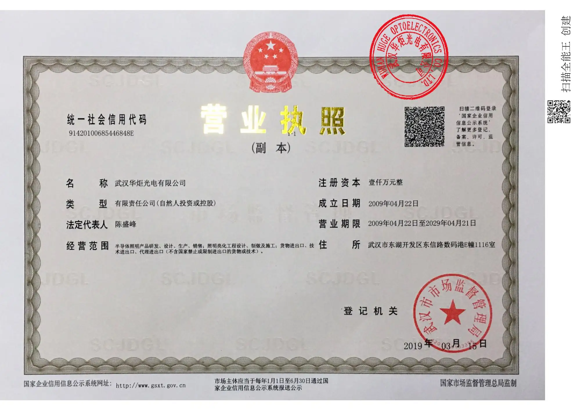 Legal Representative : Chen Shengfeng